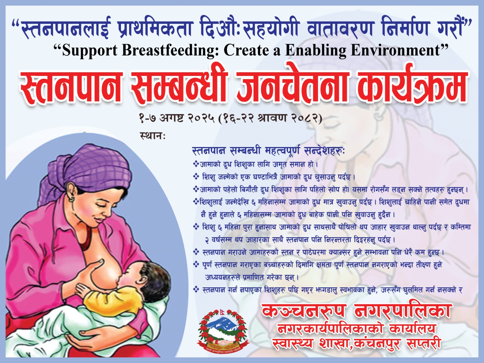 नेपालकै पहिलो पूर्ण स्तनपान नगरपालिका बन्ने तयारीमा कञ्चनरुप