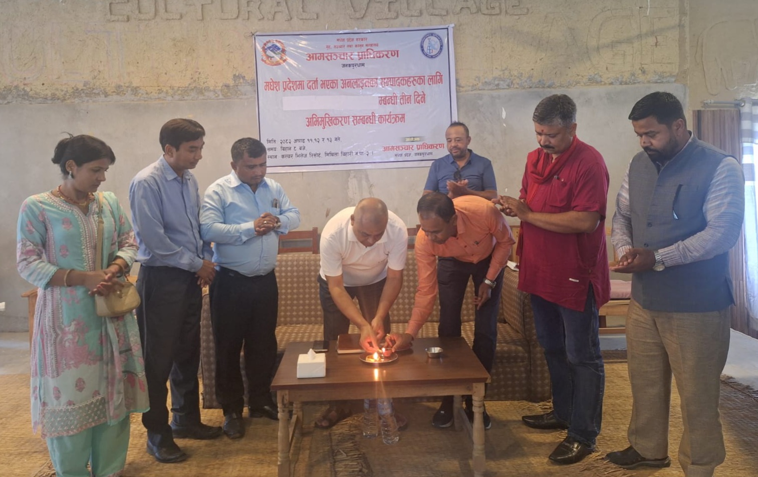 साे मधेश प्रदेश सरकारको गृह, सञ्चार तथा कानून मन्त्रालय अन्तर्गत आमसञ्चार प्राधिकरण, जनकपुरधामद्वारा अनलाइन सञ्चार माध्यमका सम्पादकहरूलाई लक्षित गरी तीन दिने अभिमुखिकरण कार्यक्रम मिथिला विहारी नगरपालिका वडा नं.२ स्थित कल्चर भिलेज रिसोर्टमा सञ्चालन गरिएको हाे ।