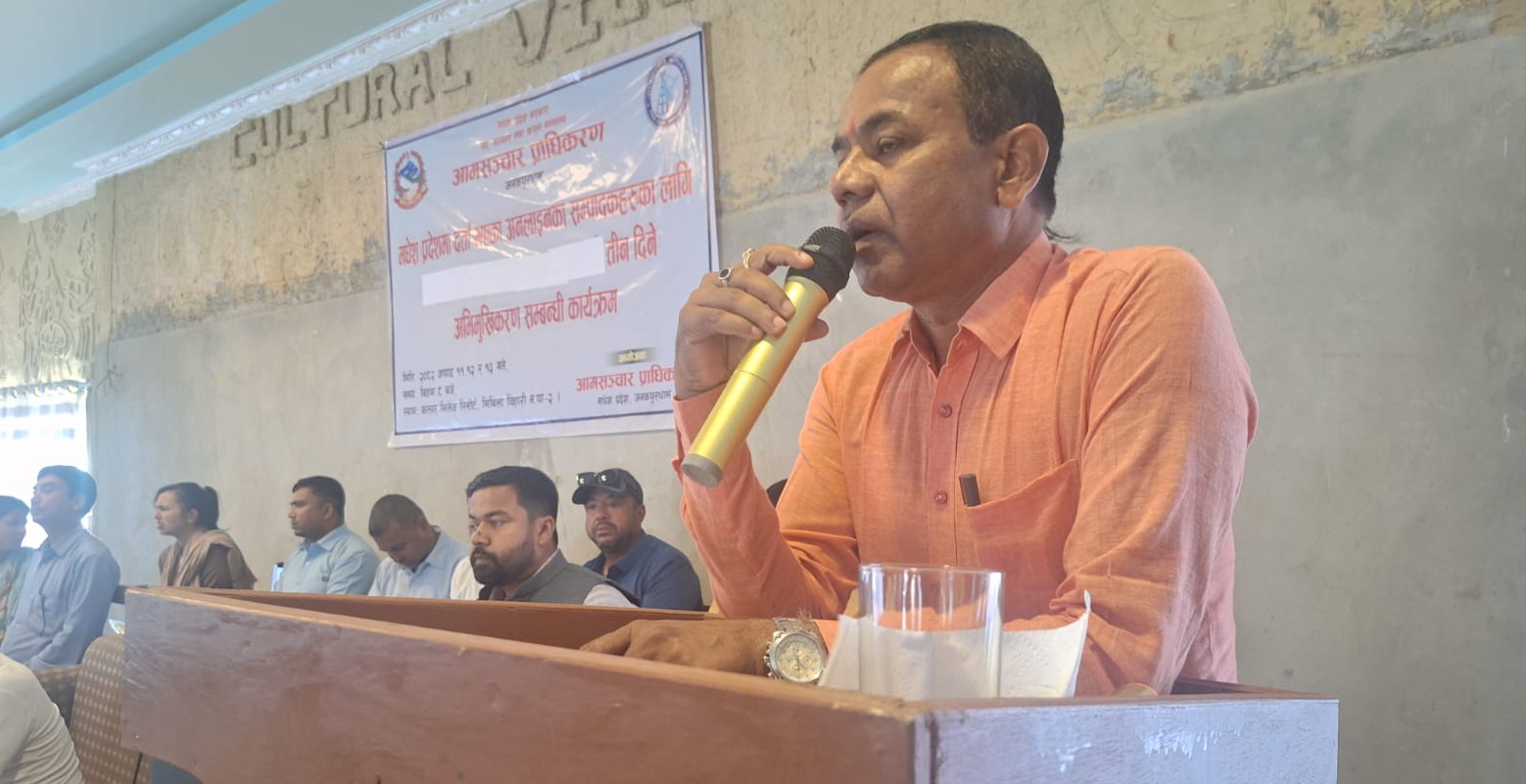 बुधबारदेखि आमसञ्चार प्राधिकरण,जनकपुरधामद्वारा मधेश प्रदेशमा दर्ता भएका अनलाइनका सम्पादकहरुका लागि समाचार लेखन एवम् सम्पादन सम्बन्धी तीन दिने अभिमुखिकरण सम्बन्धी कार्यक्रममा प्रमुख अतिथिको आसन्नबाट साे कुरा बताएको हाे ।